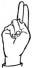 На ћирилици написано МИЛИЈАС ДИМИТРИЈЕВИЋ састоји се из 19 слова [?]. Исписано ћириличном једноручном азбуком за глувонеме: